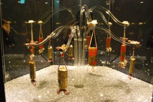 下に敷き詰めたキラキラは、廃材で作られたビーズ。銀色は液晶パネルを、金色はガラス瓶を砕いて作られているそうです。